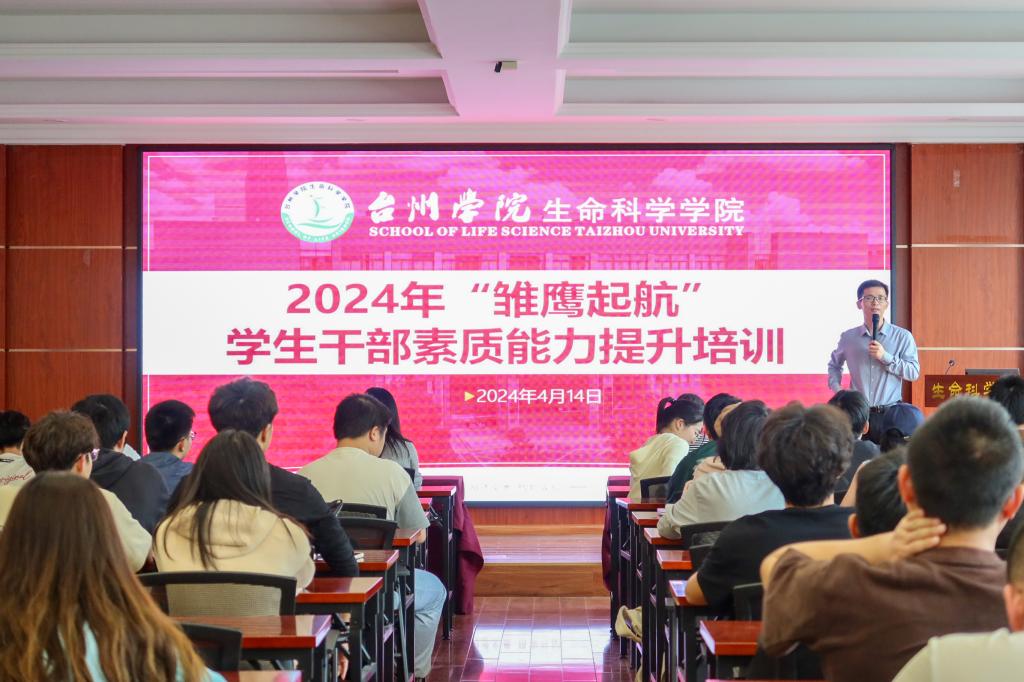 4月14日,生命科学学院举办2024年“雏鹰启航”学生干部素质能力提升培训。生命学院党委书记杨启富、药学院党总支副书记高阳、马克思主义学院办公室主任范淑燕、辅导员程子良分别围绕团队协作、新闻素养、文明礼仪和团体辅导专题,为学院全体学生干部作素质能力提升培训,学院党委副书记翁添富主持活动。
