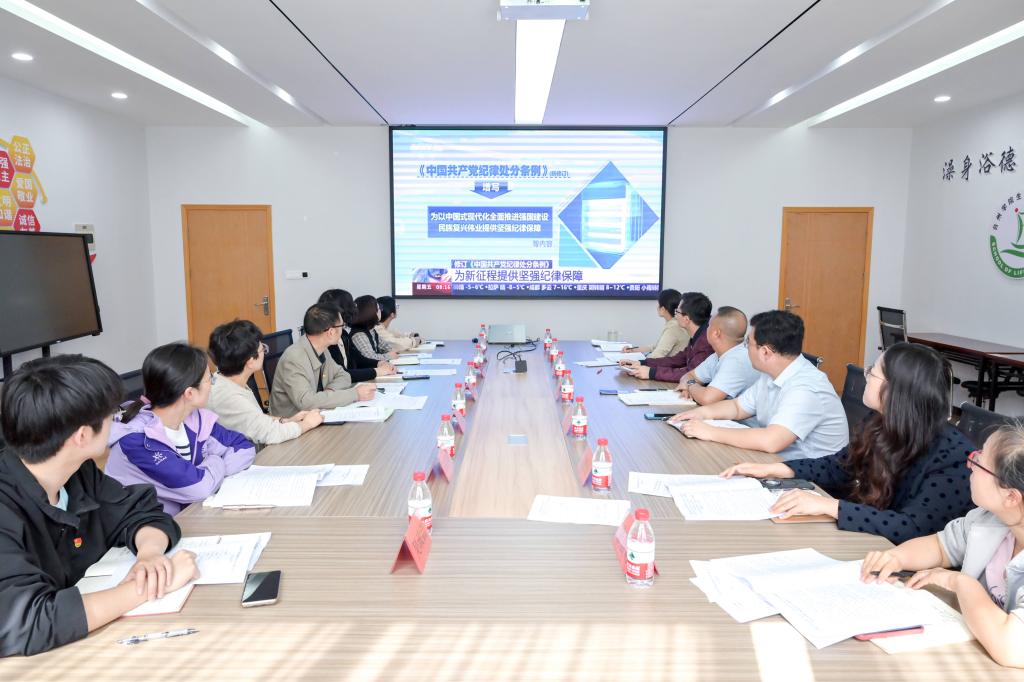 会上,组织观看了新修订《条例》的解读视频,传达学习了习近平总书记关于党纪学习教育的重要讲话和重要指示精神、中央党的建设工作领导小组会议精神、《关于在全党开展党纪学习教育的通知》精神及省、市、校有关会议精神,通报了学院开展党纪学习教育工作安排。