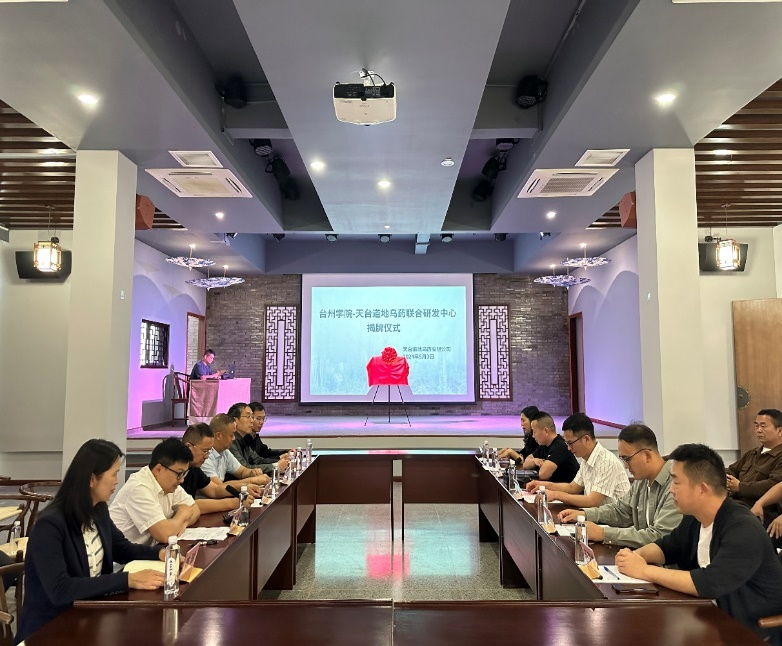 5月3日,台州学院-天台道地乌药联合研发中心揭牌仪式在天台举行。台州学院生命科学学院院长赵凯、党委书记杨启富,天台县农业农村局党委委员蔡咏建、天台道地乌药有限公司董事长陈越协共同揭牌。天台街头镇雷溪村股份经济合作社董事长金四军、天台县农技推广总站林文韬、学校地方合作处和生命学院相关师生代表以及乌药产业相关人士参加。仪式由台州学院高研院曾为教授主持。