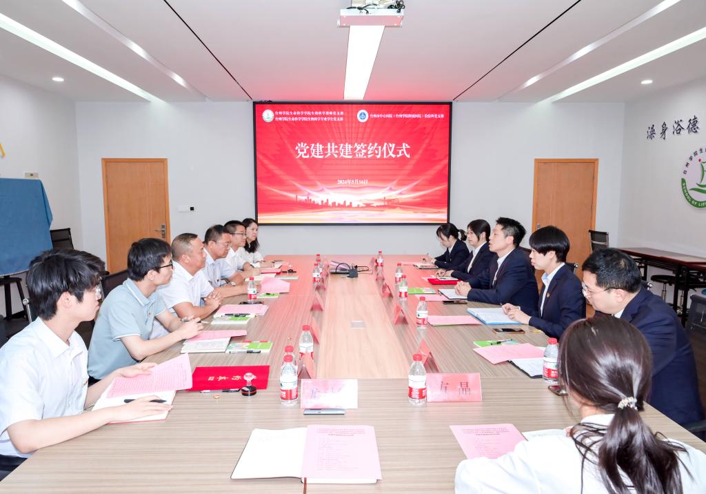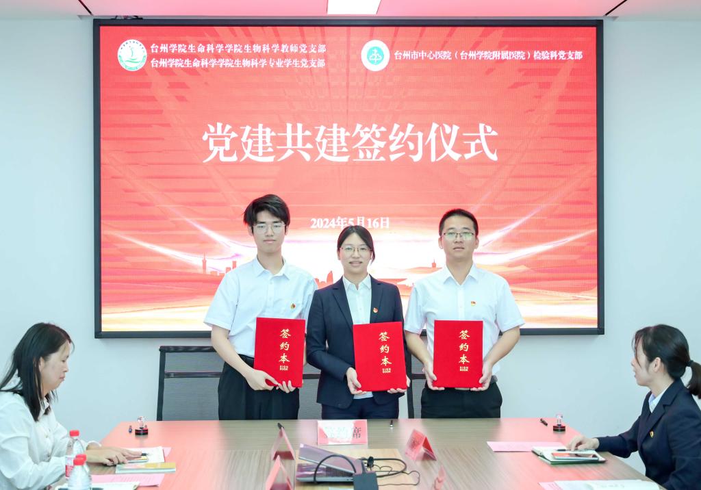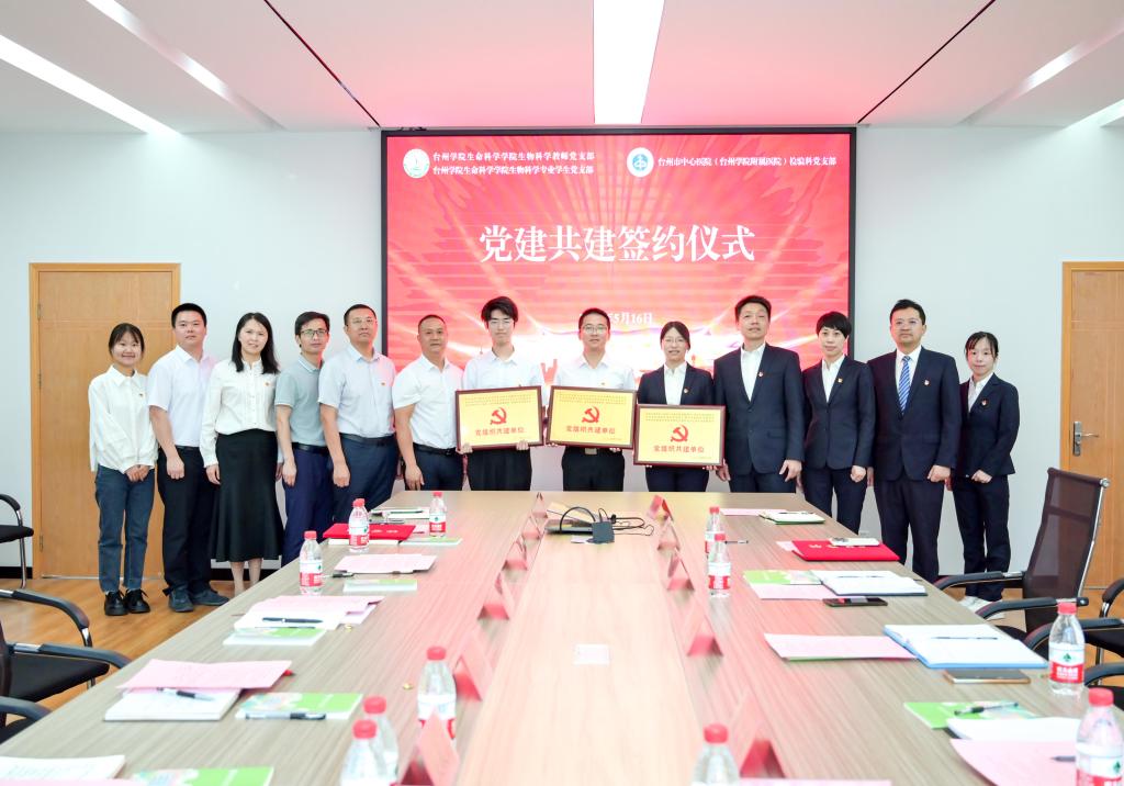 5月16日,生命科学学院生物科学教师党支部、生物科学专业学生党支部与台州市中心医院(台州学院附属医院)检验科党支部举行党建共建签约仪式。台州市中心医院党委委员、副院长林伟胜,党建办主任张弛;生命科学学院党委书记杨启富、党委副书记翁添富出席;共建双方党支部书记及支委参加。签约仪式由生命科学学院院长赵凯主持。