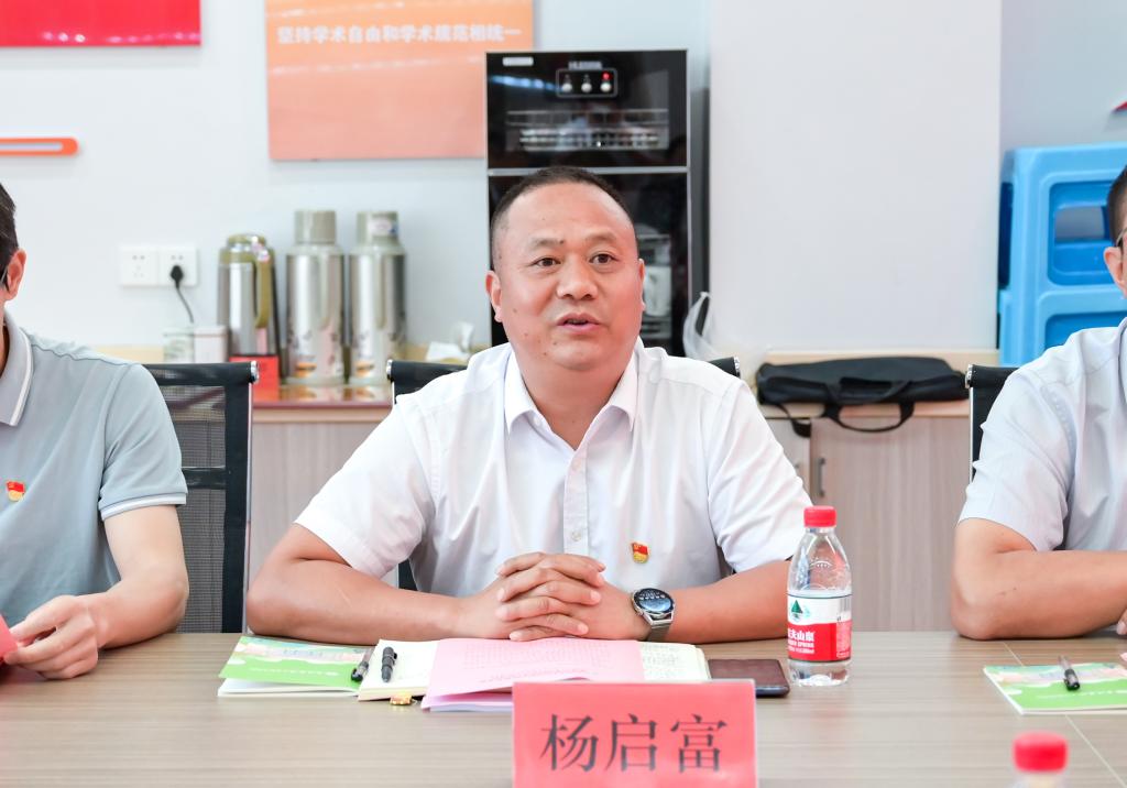 杨启富对林伟胜一行的到来表示热烈欢迎,向长期以来关心、支持生命科学学院事业发展的市中心医院各位领导表示衷心感谢。他表示,通过结对共建,医校双方基层党组织的战斗堡垒作用和共产党员的先锋模范作用得以充分发挥,对提升党建工作水平、促进各项工作再上新台阶具有十分重要的意义。希望共建双方借助结对共建的合作机遇,找准党建工作共同点、开展活动切入点,不断拓展合作的广度和深度,按照“资源整合、共建共享、凝聚力量、优势互补”原则,大力组织开展内容丰富、形式多样的活动,切实把结对共建活动抓出成效、抓出特色,实现“组织建设互促、党员干部互动、党建载体互融、医校携手共赢”的总体目标。