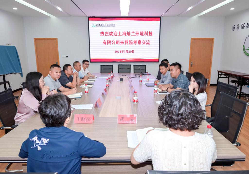 5月20日,上海灿兰环境科技有限公司曹卫东经理一行4人来我校生命科学学院考察交流,洽谈校地合作相关事宜。学院院长赵凯、党委书记杨启富、党委副书记翁添富、副院长宗恩敏出席,环境工程、环境生态工程相关专业负责人参加。座谈会由学院副院长付永前主待。