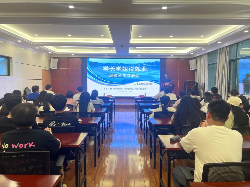6月13日晚上,第85期“学长学姐说就业”暨第十八期“生命有约”大学生成长沙龙活动在生命科学学院241会议室举行。生命科学学院党委副书记翁添富出席,2021届环境工程专业毕业生孟幼仁应邀作经验分享,辅导员及100余名学生到场聆听。