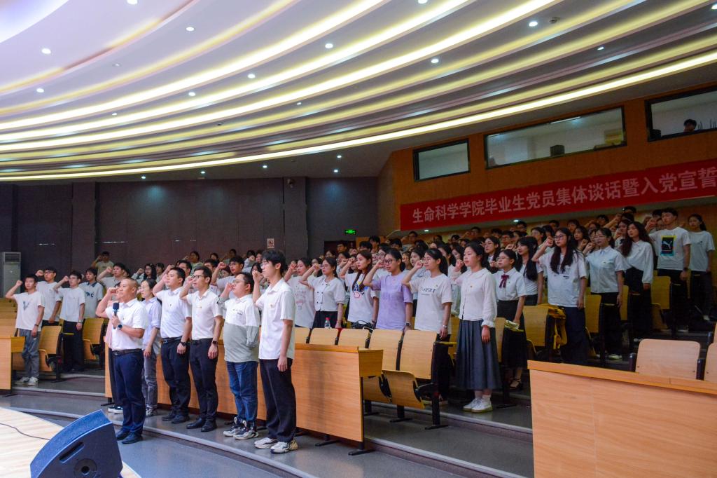 毕业的骊歌再次响起,一路高歌,共赴锦绣斑斓繁花路。6月16日上午,生命科学学院在学生活动中心举行2024届毕业生党员集体谈话暨入党宣誓仪式。学院党委书记杨启富、副书记翁添富出席,各学生党支部书记、全体毕业生党员及新发展党员参加。