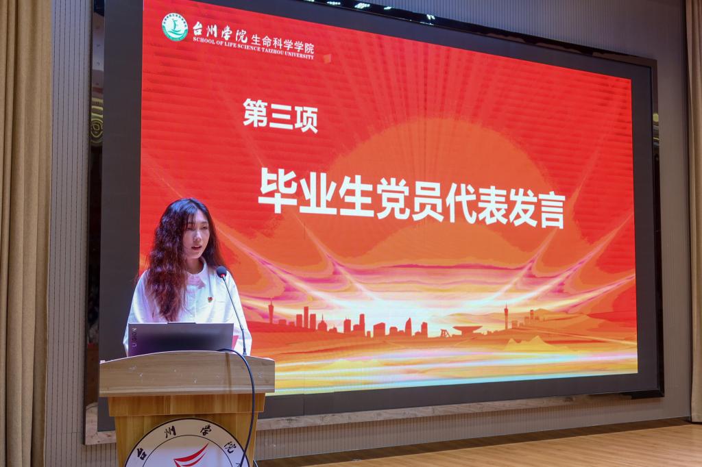 宣誓结束,2020级科学教育卓越班王新宇同学代表毕业生党员发言,她回顾入党以来的心路历程,分享在大学期间学习和生活的经历、感悟,号召全体毕业生党员在今后的工作和生活中,继续发扬党的优良传统,积极投身社会主义现代化建设,为实现中华民族伟大复兴的中国梦贡献力量。