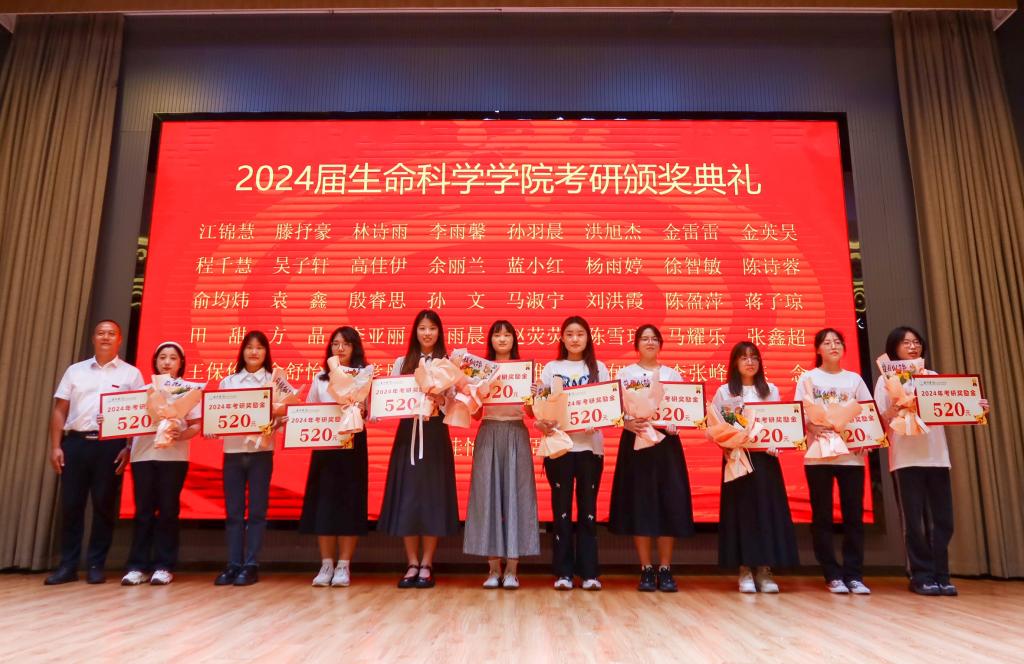 生命学院党委书记杨启富向学院继续深造的考研学子颁发考研奖励