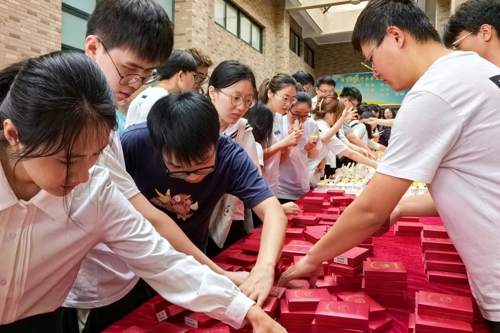毕业生领取学院专属纪念徽章