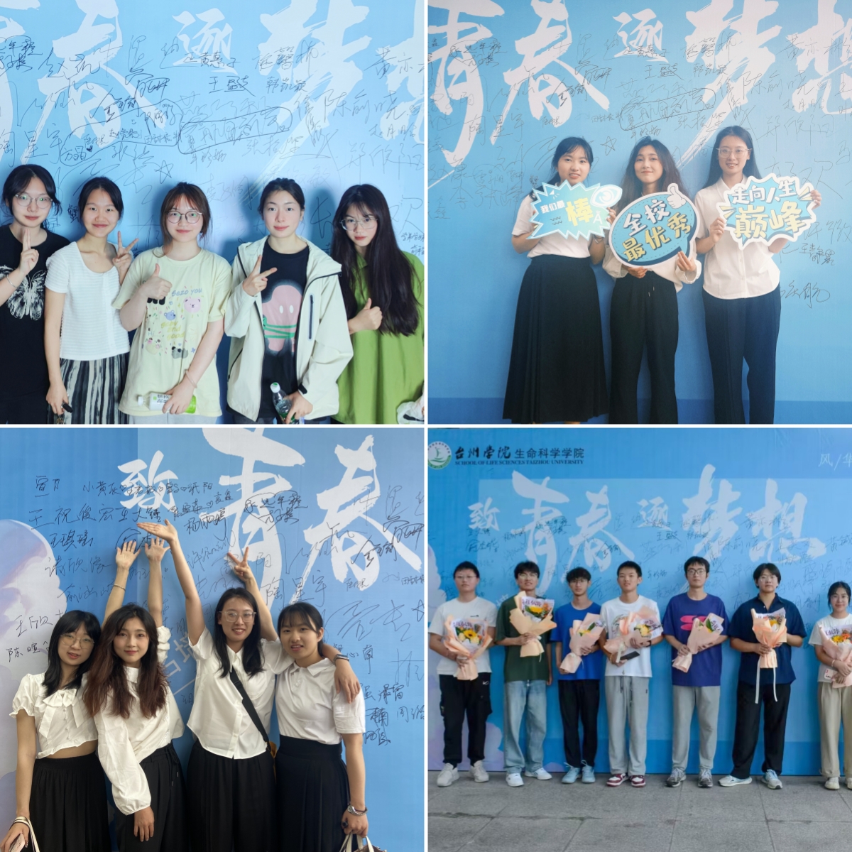 毕业生在签名墙前合影留念