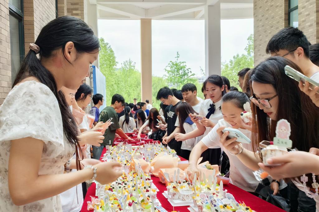 毕业生领取学院吉祥物定制姓名蛋糕