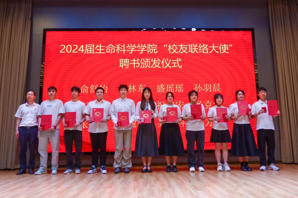 校党委副书记项凤日为生命学院校友联络大使颁发聘书并赠送纪念徽章