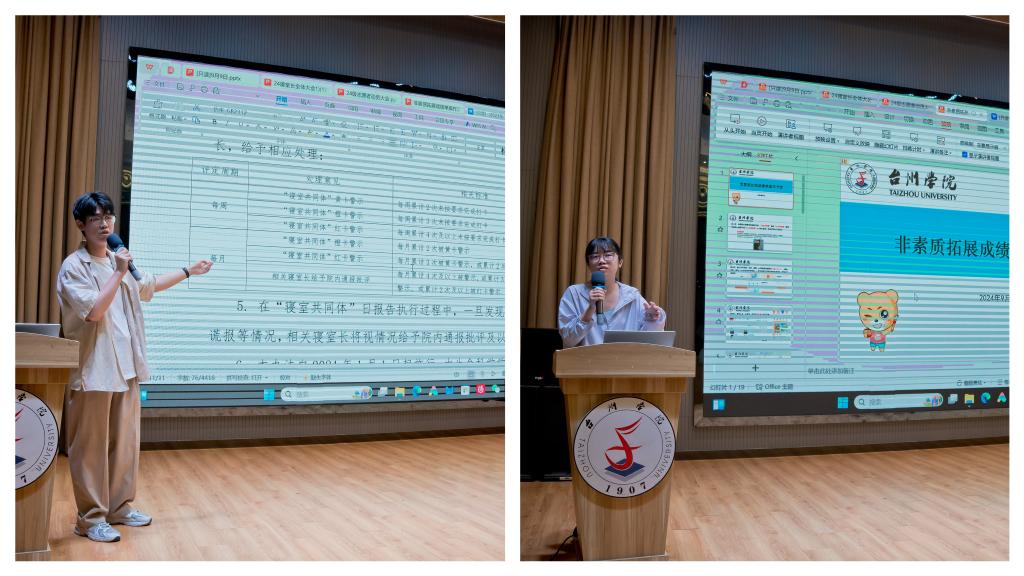 9月8日上午,生命科学学院在椒江校区学生活动中心召开文明寝室建设专题教育大会暨非专业素质拓展培训会,学院团学会学生骨干和全体2024级新生参加会议,辅导员吴政浩、李莎莎分阶段主持。