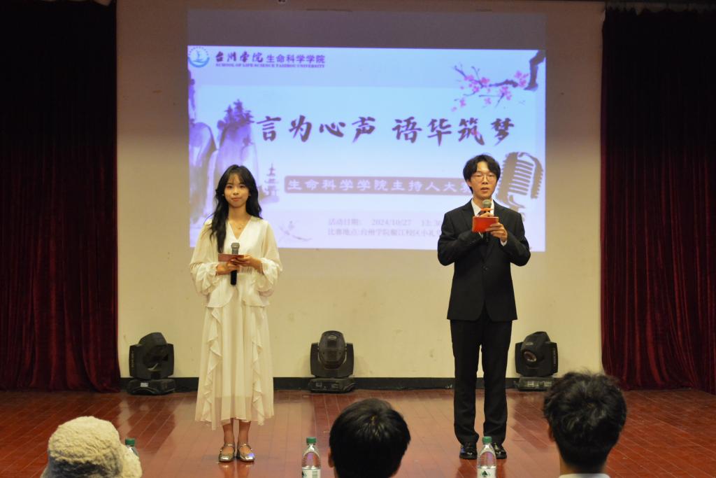 为丰富生命学子校园文化生活,提高同学们的语言表达能力和综合素质,10月27日下午,生命科学学院在椒江校区小礼堂举办“言为心声,语华筑梦”主持人大赛,学院分团委书记吴政浩及团学会主席团成员参加并担任评委。