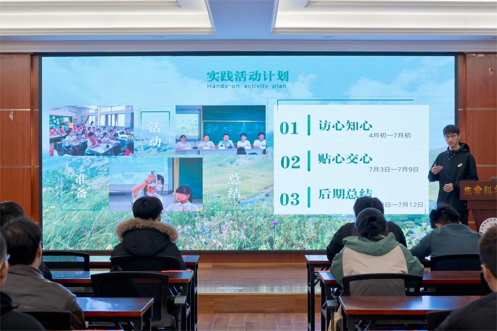 会上,生命学院“知心支教”实践队和“大学生积极心理健康素养调查”实践队依次作分享,通过PPT阐述及生动的实践视频,向同学们讲述实践故事,交流实践经验,分享实践心得,展现了生命学子在暑期社会实践活动中的精彩表现。同学们纷纷表示此次活动收获颇多,对未来的实践活动满怀憧憬,跃跃欲试。