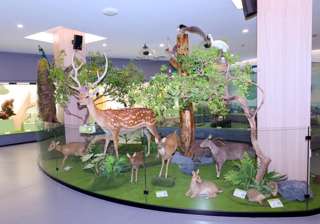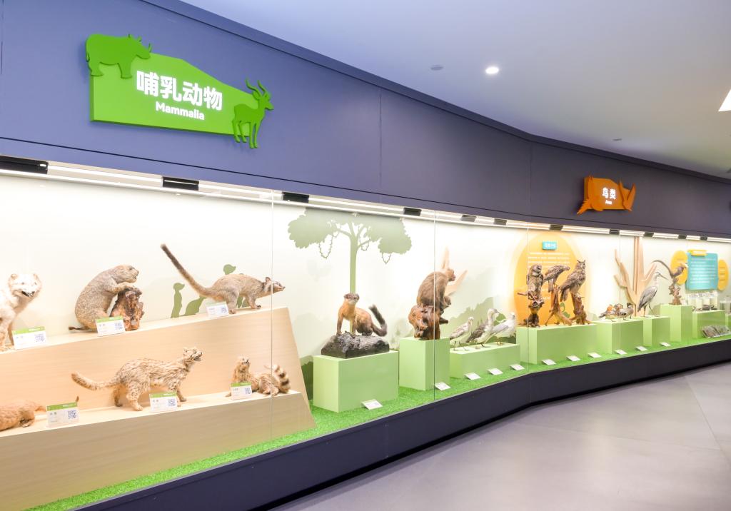 仪式结束后,全体师生一同观看了生物多样性宣传片和参观了展馆。展馆内分展区展示了学校多年来积累的珍稀濒危植物、两栖爬行类、鸟类、哺乳类、软体动物等多个类群的部分代表性动植物标本。