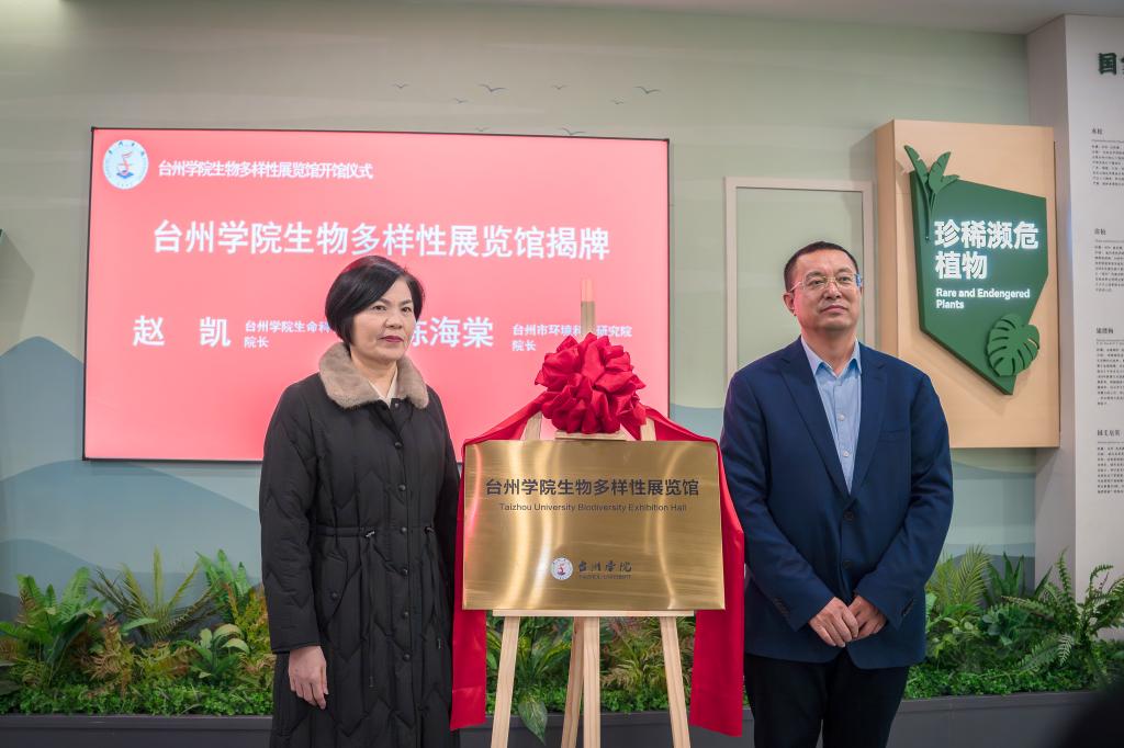 随后,在现场来宾和师生的见证下,生命科学学院院长赵凯与台州市生态环境科学研究院院长陈海棠为展馆揭幕。