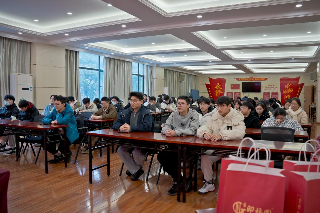 会上,辅导员程子良作后勤服务介绍,为考研学子献上了“定心丸”。学院还为研友们送出了暖心专属福利——“逢考必过”考研大礼包,寄予了满满祝福。