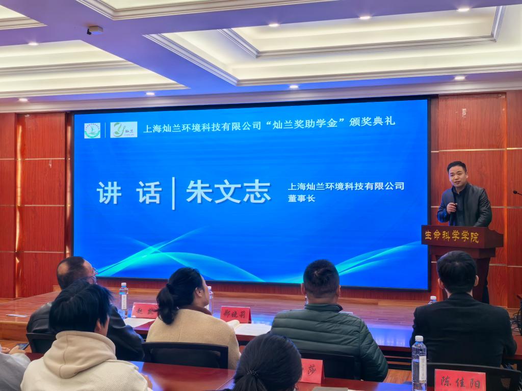 朱文志向大家介绍了上海灿兰环境科技有限公司的发展情况,他表示,上海灿兰以一丝不苟、精益求精的工匠精神,承绿色使命、兴环保兴业,致力于打造青山绿水、成就绿色未来。他指出,公司坚持服务至上、积极回馈社会、助力人才培养,设立“灿兰奖助学金”的意义不仅在于物质上的奖励,更在于精神上的鼓舞,希望同学们能够将这份荣誉转化为责任,将所学回馈社会。