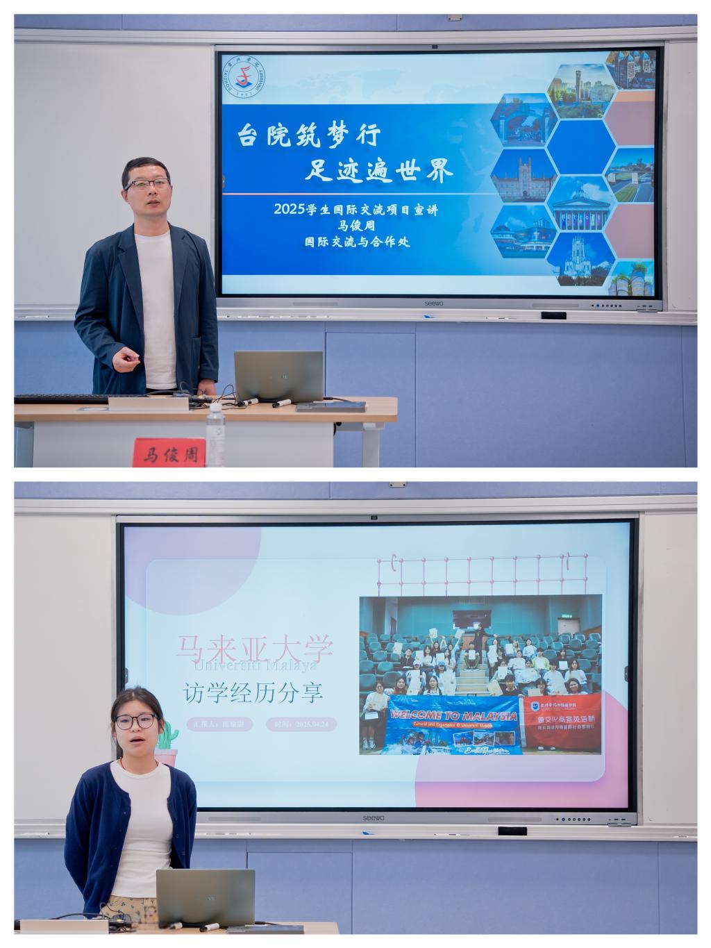 活动现场,马俊周围绕国际交流的意义、海外短期学生外派项目介绍和学生出国(境)交流学习资助办法进行详细解读,鼓励同学们积极申报,拓宽国际视野;曾赴马来亚大学学习的陈瑜尉同学结合自身经历,分享了在马来亚大学的生活点滴,从学习、饮食、交通、休闲等维度与同学们深入交流。互动环节中,同学们踊跃提问,就出国访学、深造等问题进行全方位咨询,现场交流氛围热烈。