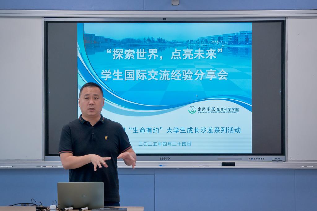 4月24日下午,生命科学学院第二十六期“生命有约”大学生成长沙龙在学校智慧教室如期举行。学院副院长付永前出席,国际交流与合作处副处长马俊周、23级生物科学拔尖人才三台班陈瑜尉同学应邀作出国留学经验分享,23级生物科学拔尖人才三台班班主任曾为、学院科研秘书黄芳及50余名生命学子参加,辅导员吴政浩主持活动。