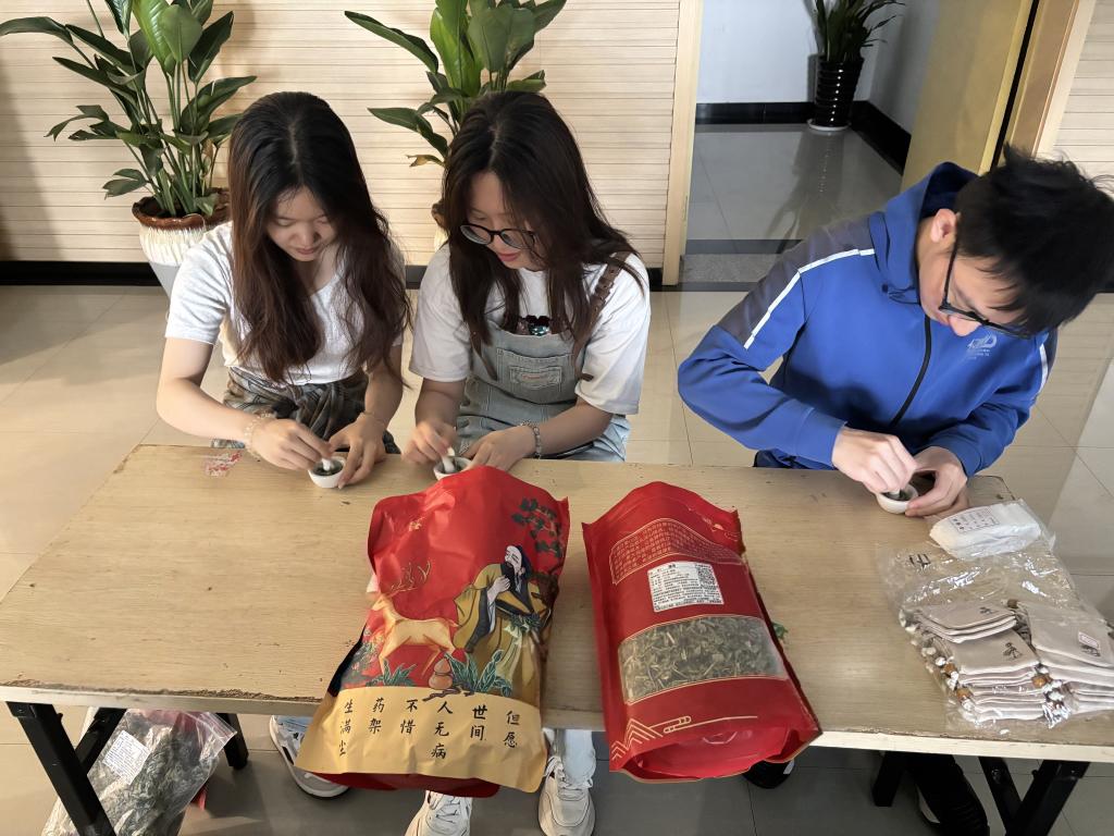 活动现场还精心策划了特色香囊DIY体验环节。同学们将艾叶、薄荷等天然草本植物进行手工研磨、科学配比,通过创意制作,把蕴含自然芬芳的原材料,转化为兼具传统韵味与纪念价值的香囊作品。