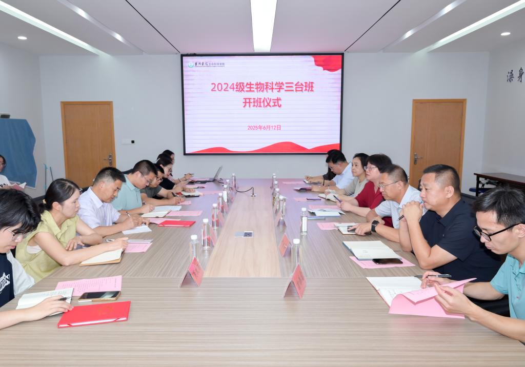生物科学专业负责人李月灵简要介绍了前五期三台班的育人成效、本期三台班选拔录用情况及人才培养方案和管理机制等。学生代表王锐作表态发言,感谢学校和学院搭建的平台,表达了加入三台班的坚定决心,号召同学们要加倍珍惜学习机会、志存高远、知行合一、不负期望。随后,学院进行了三台班导师、班主任、辅导员的聘任仪式以及师生面对面交流,并合影留念。