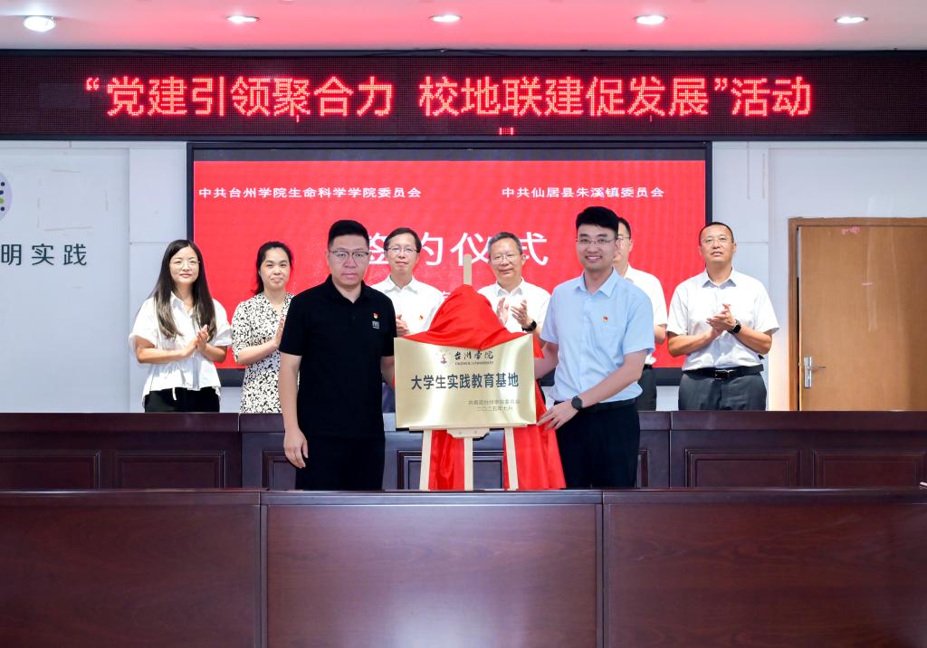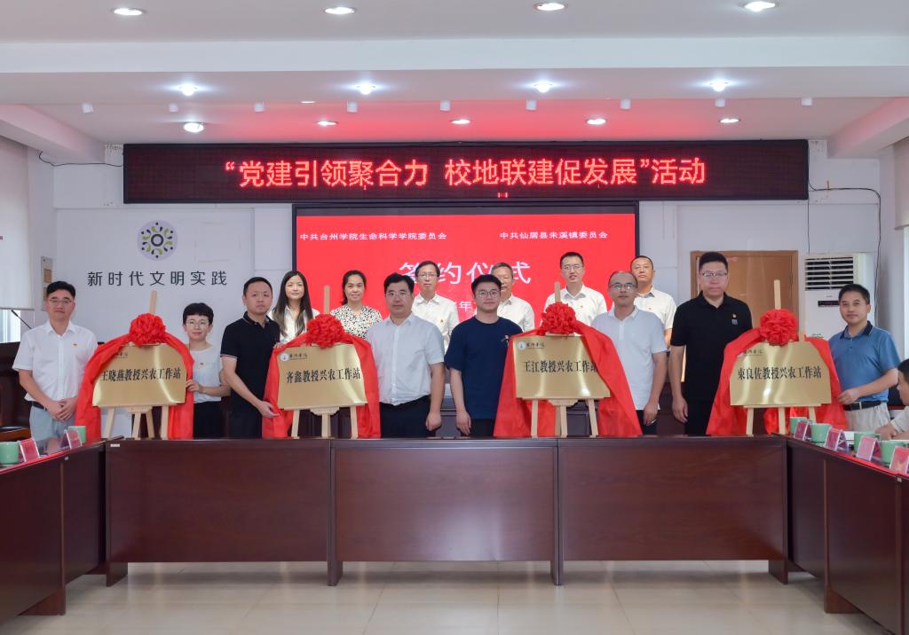 梁巍、郑晓莉代表双方签署了党建联建校地深度合作协议书。生命科学学院四个教师党支部书记与朱溪镇四个行政村党组织书记共同为共建党组织揭牌。