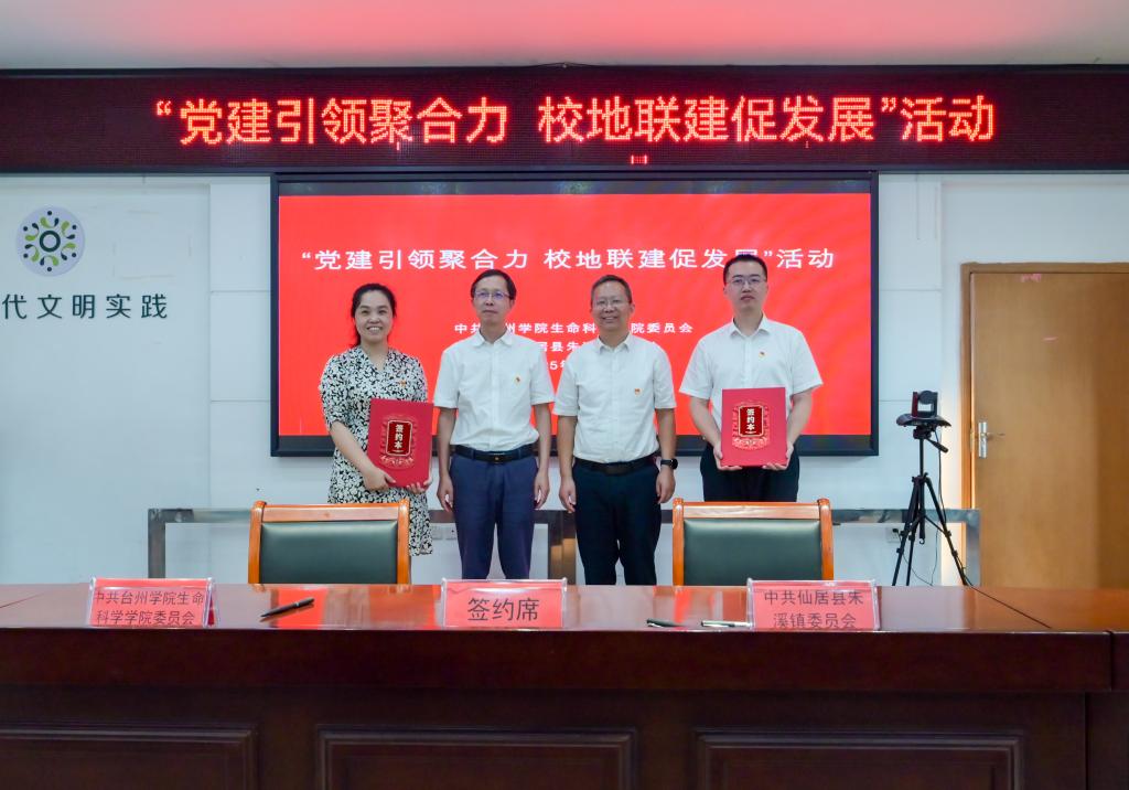 7月2日,台州学院生命科学学院党委与仙居县朱溪镇党委举行“党建引领聚合力 校地联建促发展”党建联建暨校地深度合作签约仪式。台州学院党委副书记项凤日,仙居县委常委、统战部长邱战洪出席活动,生命科学学院院长赵凯、党委书记郑晓莉,仙居县朱溪镇党委书记梁巍及双方班子成员、相关负责人参加活动。签约仪式由朱溪镇组织委员吴丰杰主持。