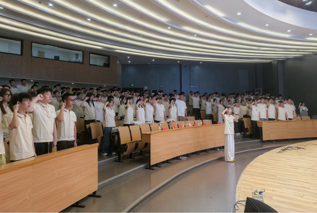 “不迟到,不早退;带席卡,亮身份;拒早餐,净教室;收手机,勤思辩;尊师长,敬课堂;知行合一,笃学力行;争做“课堂革命”践行者、优良学风建设者、不负韶华逐梦人……”活动中心内回荡着新生的庄严宣誓,这是“课堂革命我参与”的集体承诺、自律公约和动员号令。学院学工办同步解读考勤、席卡管理及“学习型班级”评比制度等,标志着2025级新生学风建设正式启动。