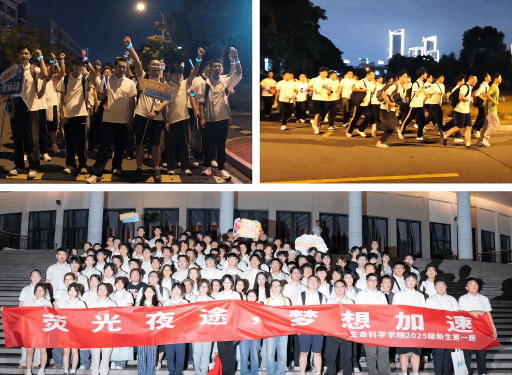 生命之美在于运动,青春之光在于绽放。迎新之夜,“2025新生第一跑”活力开启,同学们手戴荧光环奔跑于校园,点点荧光如星河流动,笑容与脚步洋溢自信与朝气。这不仅是一场运动,也是一次温暖的相遇,更是大学健康习惯养成的动员号召,新生在奔跑中打开心扉、结识同行、强身健体,共赴发光的前程。