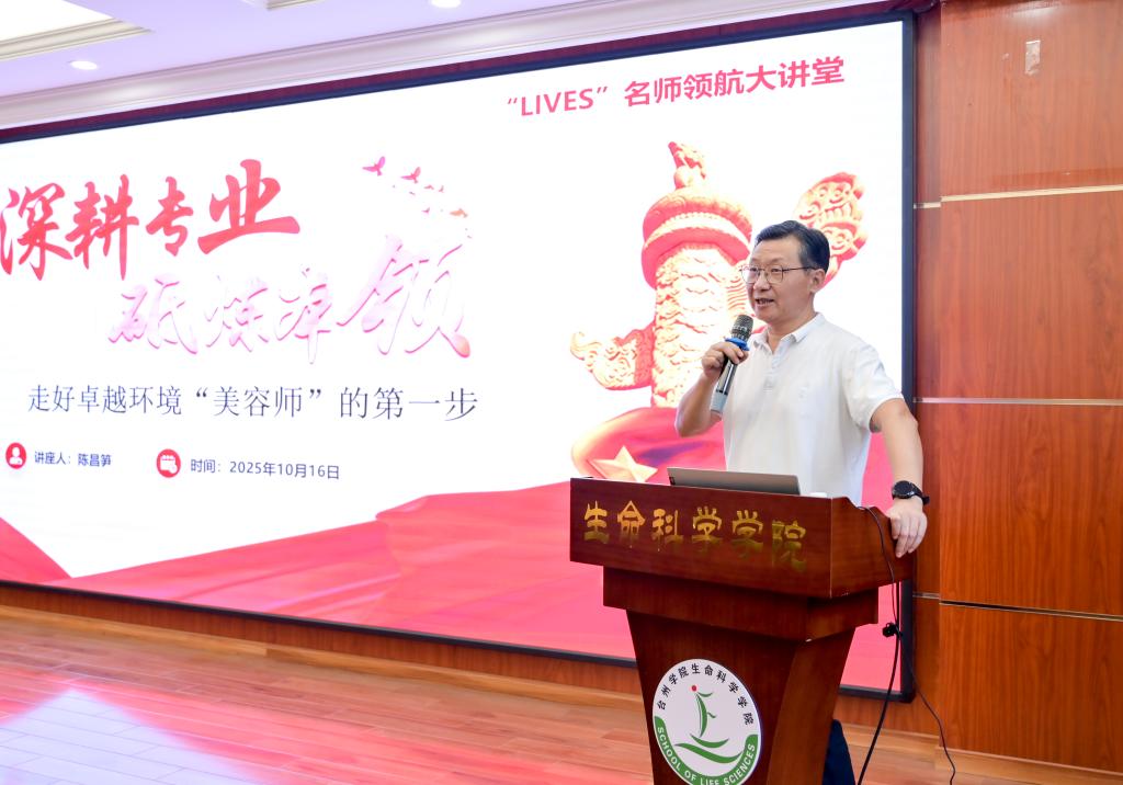 10月16日,生命科学学院举办“LIVES”名师领航大讲堂,邀请生命科学学院客座教授、环境生态领域资深专家陈昌笋为2025级环境生态工程专业学生讲授专业导论课。生命科学学院党委书记郑晓莉,台州市环境科学设计研究院副院长、高级工程师林骏,台州市环境科学设计研究院研发部产品经理吴志文,台州市绿野环保工程有限公司副总经理叶金正参加活动。本次活动由浙江省样板党支部环境生态工程教师党支部承办,环境生态工程系主任、党支部书记王晓燕主持。