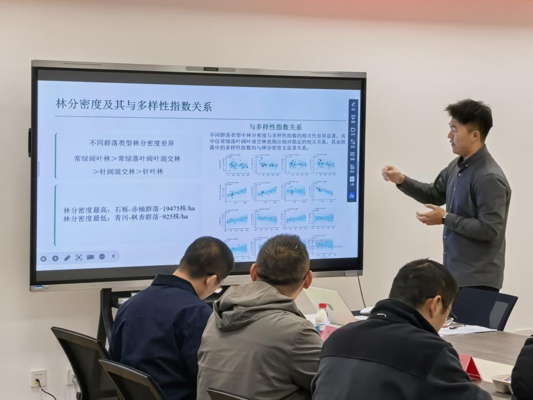 此次答辩研究生杨佰润同学成绩优秀,符合毕业条件,已申请提前毕业。答辩环节中,杨佰润围绕台州地区森林植被物种组成及其碳汇分析展开汇报,重点阐述台州地区所调查森林群落物种组成及其群落类型,以及种间关系、空间格局和植被碳汇的规律性,并阐述了关于台州地区森林的特征及研究方向。答辩委员会成员针对论文学术价值、研究方法创新及应用前景等方面展开专业质询,杨佰润同学沉稳应对、思路清晰,对各项问题均作出了系统而准确的回答,充分展示了其扎实的科研基础、严谨的学术态度和较强的分析与思辨能力。