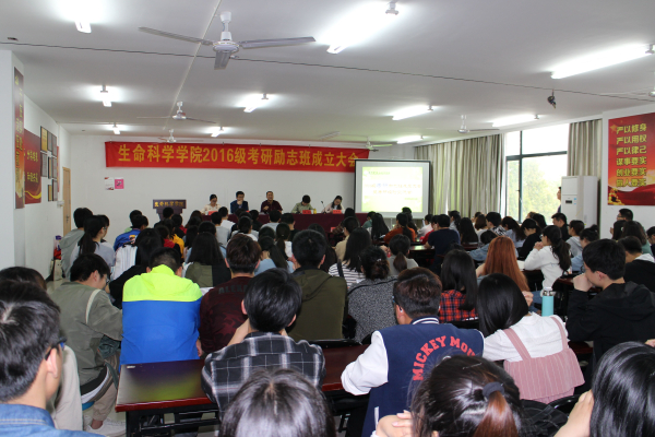 学院整合资源,形成合力,注重学风育人的全程化、渗透式和空间感,着力构建学风建设的长效机制。一是,完善评优体系,发挥榜样作用。以“学习型班级”创建为载体,优化《“学习型班级”竞赛量化考核体系细则》,以评促建、以评促改,评建结合、重在建设,进一步在全院范围内营造优良学习氛围;进一步完善“学习标兵”、“道德标兵”、“十佳大学生”等优秀榜样人物的评选工作,充分发挥优秀学生的辐射影响力;进一步健全综合考评评选机制和优秀毕业生的评选工作,切实发挥“三好学生”、“优秀学生干部”、“优秀毕业生”等的典型示范引领作用,培养学生锐意进取、创先争优的高尚品质。二是,以“导师制”为平台,培育创新人才。在全院范围实行本科生导师制,加强导师的育人引导作用,鼓励学生参与各级各类学科竞赛、科研训练、创新创业大赛、职业规划大赛等项目,营造学生敢于实践、勇于创新的氛围,增强学生社会责任感、创新精神和实践能力;三是,搭建师生交流平台,实现全员育人。通过“会师星期四”师生交流日活动、教师联系寝室制度、导师进公寓等多项举措,在师生间搭建有效的沟通桥梁,实现师生零距离接触,增进师生感情,引导教师在实际行动中做“四有好老师”,做学生的“四个引路人”;四是,开展“生命科学节”,以非专业素质拓展促进学风建设。依托“生命科学节”和“大学生文明修身”专题活动,通过科研竞赛、学术交流、绿色环保类的相关活动,提高学生的专业素养和科研创新能力;五是,成立“考研励志班”,助力学生成长。学院集中优势资源,每年均邀请经验丰富的博士担任“考研励志班”班主任,邀请考研成功的学长学姐传授实战经验,帮助考研同学及时解决备考过程中遇到困难和问题,提振考研信心、营造备考氛围、相互激励、共同提高。
