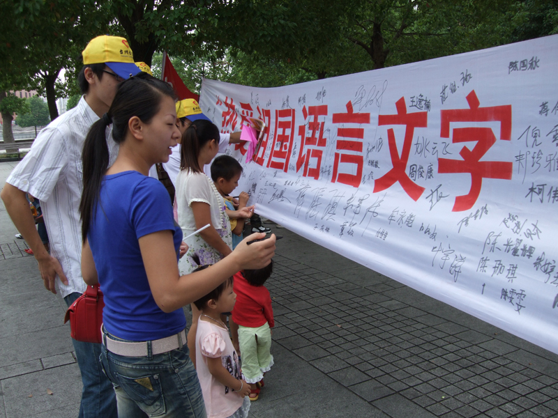 活动期间,志愿者们积极行动,向市民讲解普通话宣传知识并发放推普倡议书,邀请市民们在“热爱祖国语言文字,构建和谐语言生活”的宣传横幅上签名。活动尤其得到了小朋友们的关注和喜爱,他们在推普宣传活动现场,认真朗读散文、诗歌、绕口令等作品,语言流畅、口齿清晰、发音标准,令大家欣喜不已。随着活动的陆续展开,吸引了众多市民前来了解咨询,积极响应。