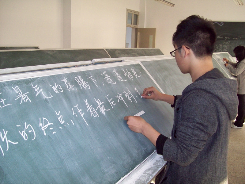 本次比赛分为钢笔、粉笔、毛笔三组,比赛内容采用现场公布的形式。参赛选手个个精神饱满,信心十足。端正秀美的楷书,古朴典雅的隶书,风驰电掣的草书,风格各异,各具特色。各参赛选手在活动中相互学习,共同探讨,在笔墨书香的氛围中陶冶情操。最终,尹嘉彬、黄晨、李芳分获钢笔字、粉笔字、毛笔字一等奖。