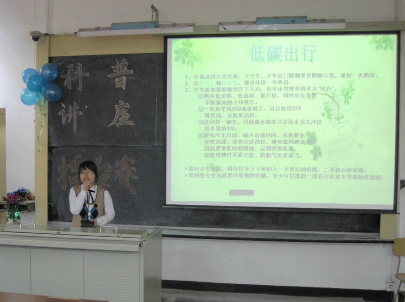 选手们选材丰富,涉及自然现象、生活主题和科普知识,有牵动人心的地震、台风、干旱等自然灾害,有提倡低碳生活的环保主题,也有高血压等有关人类疾病的保健知识。比赛现场精彩不断,选手们在短短5分钟的时间,通过精美的幻灯片,声情并茂地阐释了生活常识和科普知识,“擂”出当代大学生热爱科学、热爱生活、关爱生命、关注时事的新一代大学生的风采。最终,09环境工程陈春静同学以《地震》为主题,夺得本次比赛的冠军。