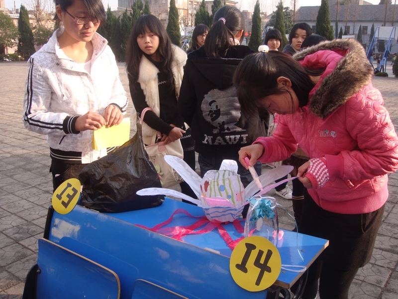 此次大赛得到10级新生的广泛参与。各参赛队紧扣“创意”两字,发挥自己的想象,把一个个充满个性、想象、温馨的灯笼呈现在大家面前。参赛作品中有用西瓜镂空雕刻而成的西瓜灯,用透明玻璃杯做的许愿灯,精美绝伦的宫灯和可爱的雪人造型灯等。活动还穿插传统知识抢答,丰富同学们的知识。最后《四日宫灯》凭借其精致的手工和富有神话色彩的内涵摘得本次大赛的桂冠。比赛结束后同学们还在校园里还举行了猜灯谜活动,最后大家把携带着祝福的孔明灯放飞于朗朗夜空。