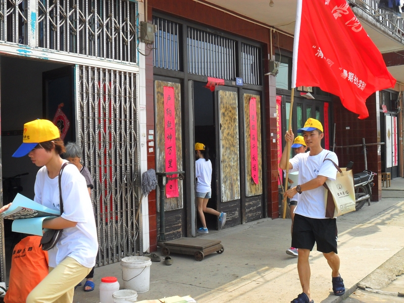 上午9点钟,队员们顶着烈日在峰江街道办事处集合,分成了三个组在三个地点开始了清洁家园走村入户的宣传,队员们手上拿着清洁家园的行动倡议书和宣传资料挨家挨户的进行宣传,村民们都很热情主动地来了解清洁家园的相关信息。村民们非常认可这样的宣传方式,并表示欢迎。