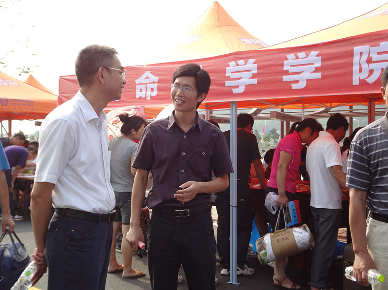 陈书记、龚校长对生命学院参与迎新工作的学生们表示亲切慰问。生命学院党委书记施时迪指出,今年是特殊的一年,首次施行临海、椒江两地办学方略,这为迎新工作带来了巨大的不便。但志愿者们脸上的笑容、迎新的热情却丝毫不减,施书记给予志愿者高度的赞扬,同时还希望志愿者能够多与新生交流,帮助他们解疑答惑,树立生命学院的良好形象。在领导指导工作之际,新生也一批一批地到来,志愿者们顾不得擦干额头的汗珠又继续带领新生报到、登记、入住寝室等一系列工作。