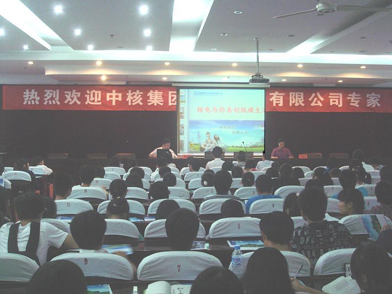 当晚,“核电与我”暑期社会实践队还在临海校区学术报告厅举办了“核电与您共创低碳生活”专题讲座,中核集团三门核电有限公司政治工作办公室主任钟英强应邀为讲座主讲人,生命科学学院党委副书记王金宝主持本次讲座。
