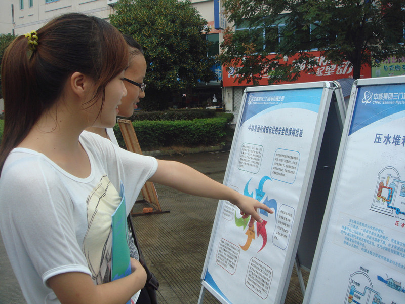 9月29日下午,台州学院“核电与我”暑期社会实践队的队员们活跃在台州学院的各个角落,他们用海报展览和分发核电科普资料的方式向同学们展示核电知识的重要性。