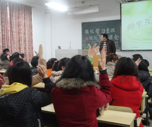 本次活动采取分班的形式展开。52位教师根据任课和党员联系班情况分成15个组,参与到各班班会与同学们进行面对面的互动交流。主题班会上,各班围绕如何创建“学习型班级”,把“强化学习意识、优化学习理念”主题贯穿始终。各班以新颖独特的形式充分展现自班特色:有美好留恋的班级活动回顾、有学习优异学生的经验介绍、有精彩激烈的辩论比赛、有发人深省的经典小品、有分组讨论的思想交流……班会精彩纷呈,气氛热烈。