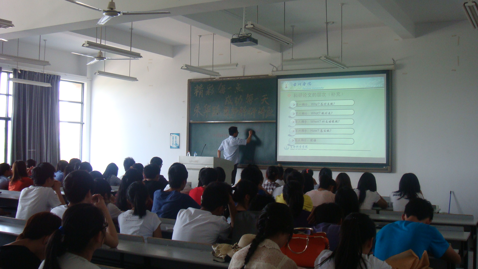 此次专题讲座得到了广大同学的积极响应,偌大的教室座无虚席。朱老师以论文的类别与等级作为切入点,从“巩固理论知识,提高学习兴趣” 、“培养分析问题、解决问题的能力” 、“早进科研室,为就业加分” 、“为考研与公务员腾出时间”等四个方面详细展开,罗列了早做科研的优势和意义以及科研实践对工作、学习的推动作用。朱老师还将报名科研项目的途径、大学生可申请的课题、参加的学科竞赛及如何查阅科研书籍向同学们一一做了介绍,并希望同学们能积极投身于科研活动中。同学们与老师的提问互动环节把本次沙龙专题讲座推向了高潮。同学们纷纷表示此次活动使他们受益匪浅,感受良多。