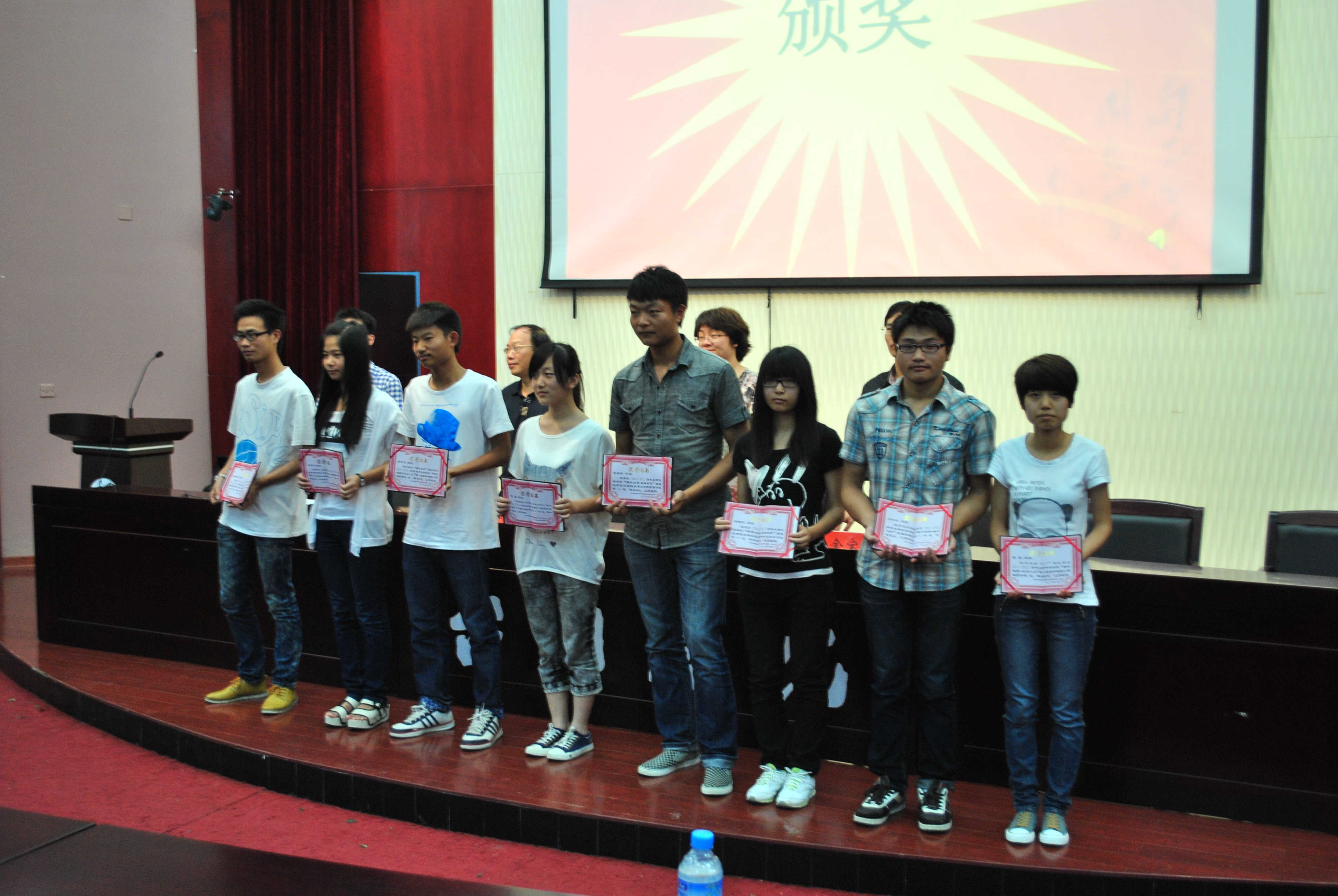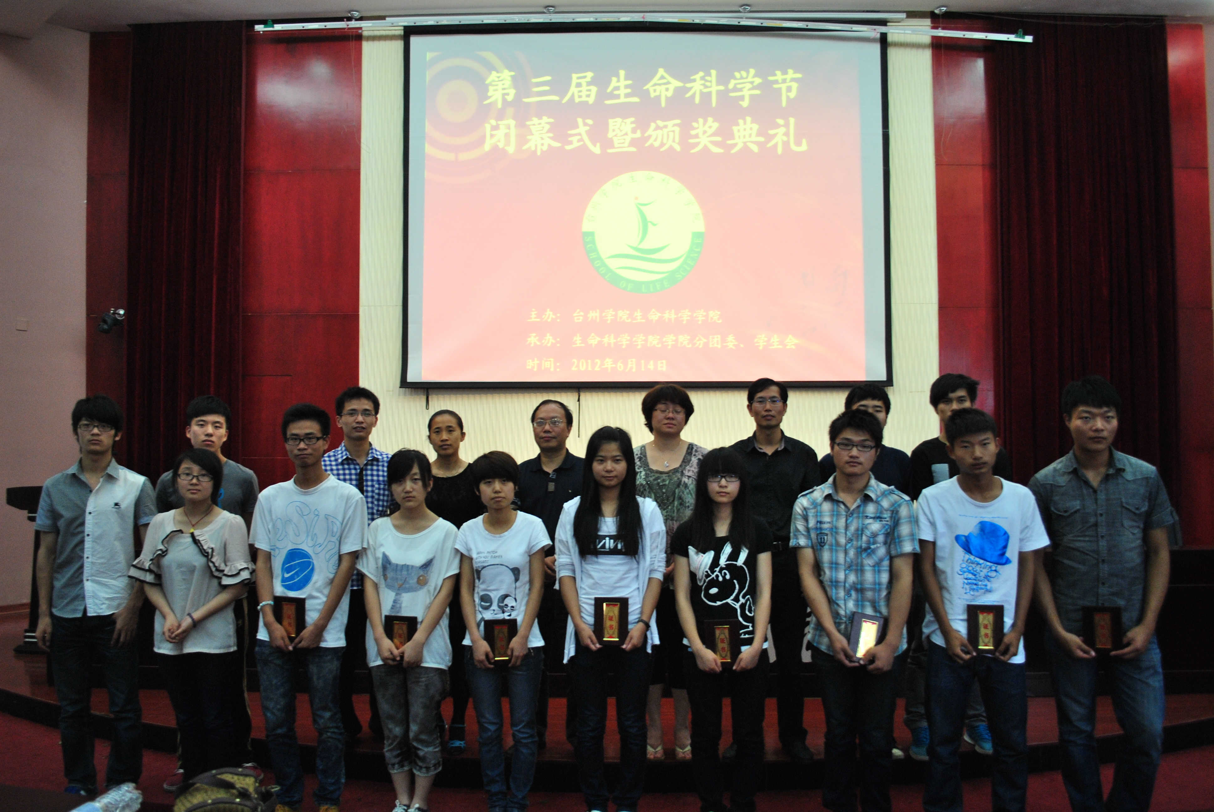 随后,盛大隆重的颁奖典礼圆满进行,学院党政领导李钧敏、王金宝和柯世省为在本届生命科学节中取得优异成绩的学生代表颁发奖状并合影留念。在继优秀学生代表楼潇潇发表获奖感言之后,生命科学学院第三届生命科学节在全院师生的热烈掌声中圆满闭幕。