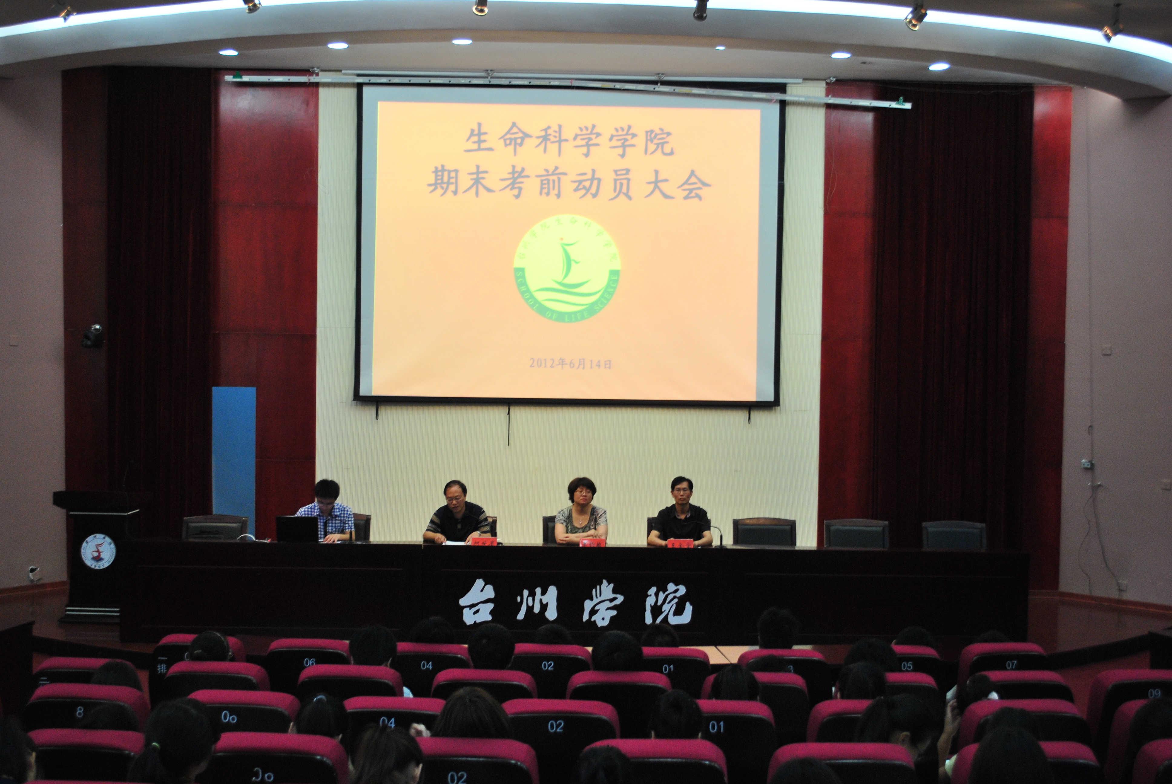 期末临近,为了鼓舞同学们的士气,提高同学们的备考信心,引起同学们对期末复习的重视,6月14日,生命科学学院在椒江校区学术报告厅举行期末考前动员大会。生命科学学院院长李钧敏、党总支副书记王金宝、副院长柯世省,分团委书记翁添富出席本次大会。