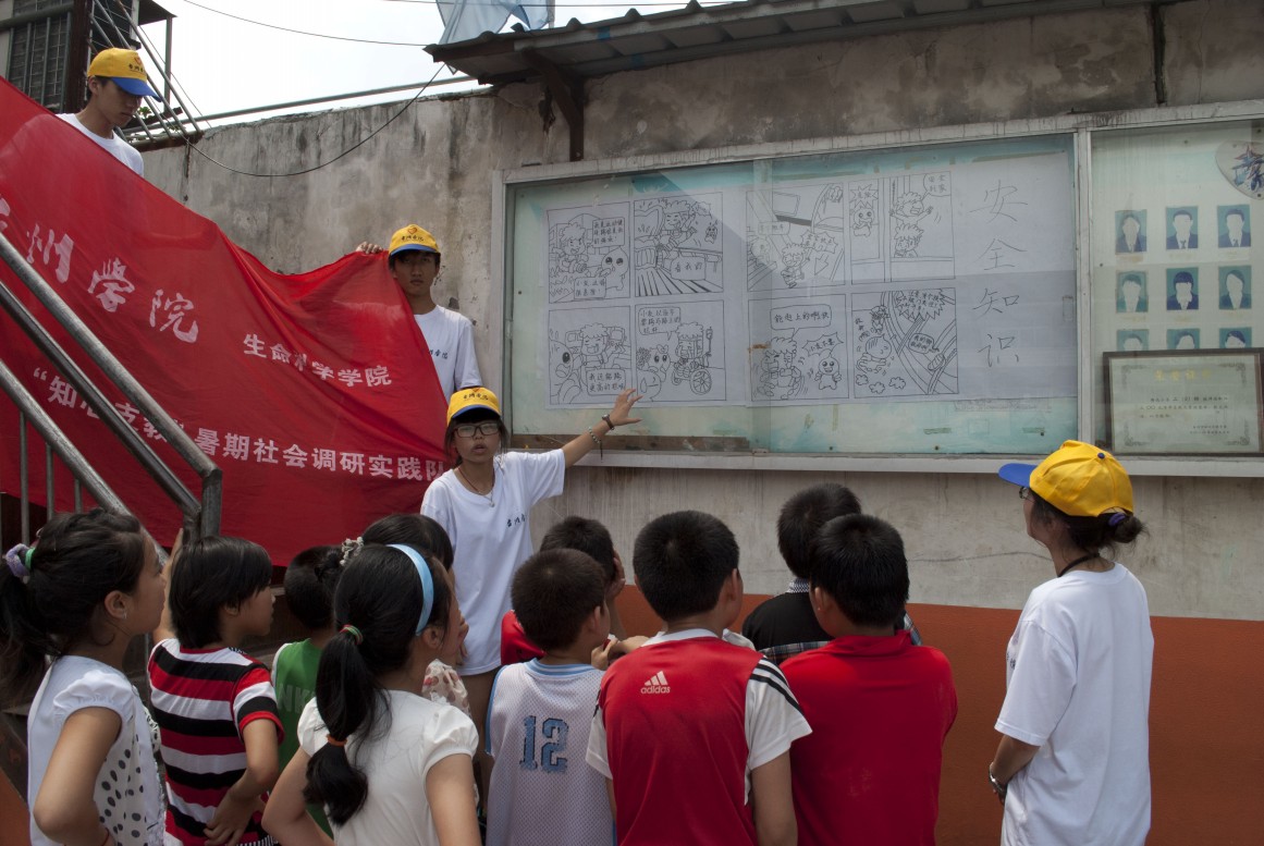 本次安全教育宣传活动采用了一种创新安全教育方法,用漫画评安全、识安全、知安全。以幽默诙谐的童年易读宝四格漫画代替了严肃刻板的传统说教,在童年易读宝四格漫画的基础上,“知心支教”实践队队员精心构思、集思广益、大胆创新,内容包括交通安全知识、家庭生活安全常识、社会安全常识等四个方面,主题突出,图文并茂,吸引了广大师生驻足观看。校园橱窗里丰富多彩的漫画不仅美化了校园,同时也时刻提醒学生关注安全。在一节安全教育课下,寓理于画、寓教于乐的漫画教育形式使小学生们增加了阅读乐趣,增强了安全教育知识,为学生暑期安全工作起到了良好的铺垫作用。