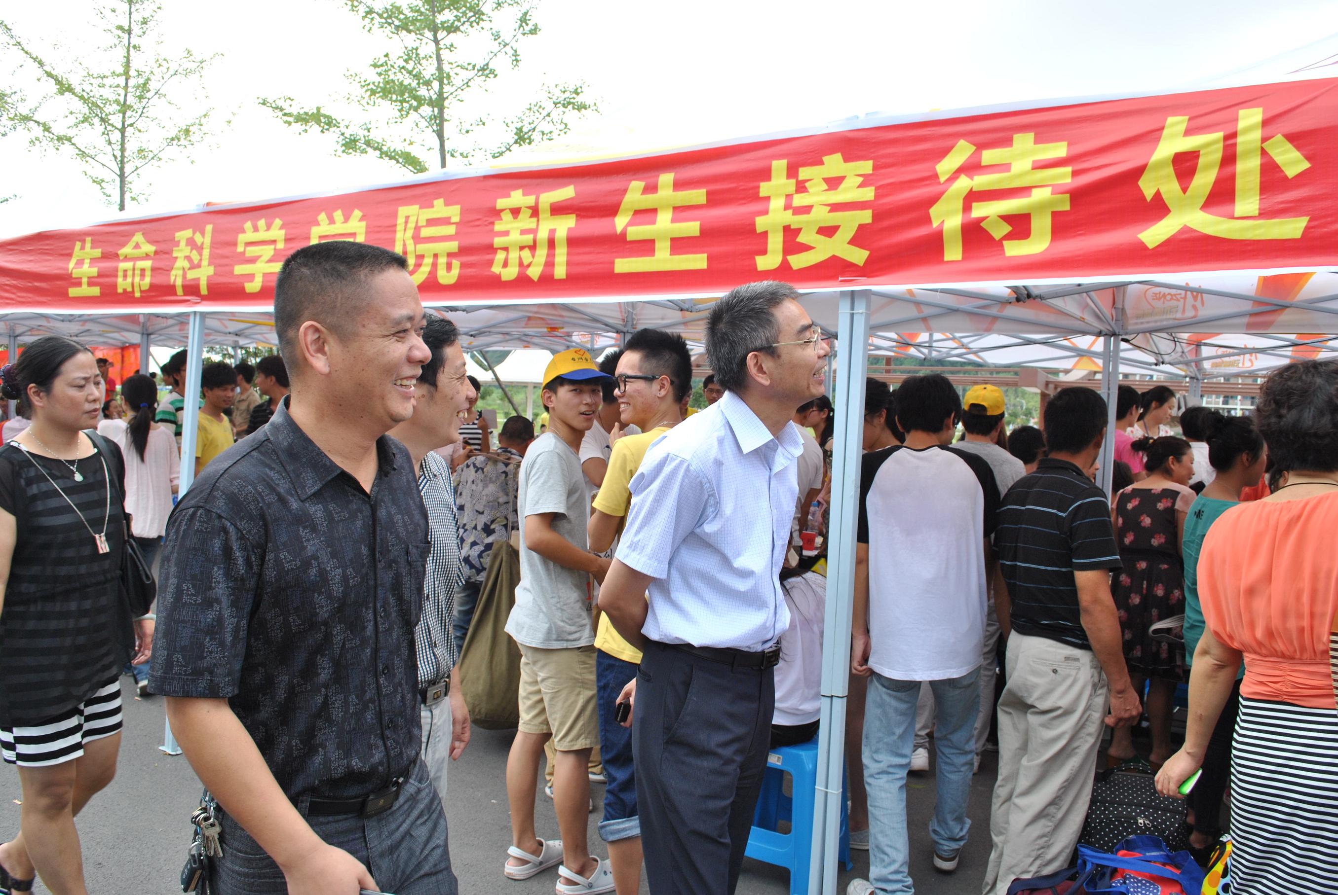 龚校长、包书记对我院参与迎新工作的志愿者表示亲切的慰问。生命学院党总支副书记王金宝老师指出,此次活动是我院“搬家”大统一之后的首次迎新工作,以往两地办学而带来工作不便已不复存在。学院志愿者的积极热情,继承了我院以往的优良传统。对此,王书记给予迎新工作的志愿者们高度评价并希望志愿者与新生多交流,为新生排疑解难,为学院树立形象。在领导莅临指导的同时,新生一批批接踵而至,志愿者们各个汗流浃背,但仍激情不减为新生提供快捷优质的“一条龙”服务。