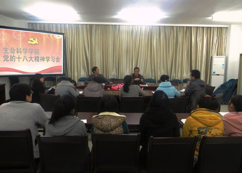 党总支施时迪书记首先强调了当前学习贯彻十八大精神的重要意义,并带领全体党务骨干解读了十八大精神的主旨和精髓,分享了自己关于十八大的十点“深刻领会”:要深刻领会十八大报告主题、深刻领会党和国家在过去5至10年取得的伟大成就、深刻领会科学发展观的历史地位和指导意义、深刻领会中国特色社会主义道路的丰富内涵、深刻领会“八个必须坚持”的基本要求、深刻领会实现全面建设小康社会奋斗目标的新要求、深刻领会“五位一体”的重大布局部署、深刻领会全面提高党的建设科学化水平的八大要求、深刻领会24字社会主义核心价值观、深刻领会建设学习型服务性创新性新型政党的意义。他指出,广大师生要结合实际,将十八大精神渗透贯彻到日常的学习、生活和工作中,形成学以致用、用以促学、学用相长的良性循环。