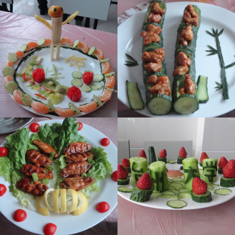 厨艺大赛在水果拼盘后如火如荼的展开。“煎、炸、亨、煮”,现场弥漫着一股诱人的香味。各色菜品色、香、味俱全外,其菜名更是深蕴内涵“春色满园关不住”的诗意;“快乐天使”的纯洁;“跃动生命”的活力;“爸爸的味道”的更是散发着迷人温情。烹饪之余,选手们的摆盘工艺也充满了无限的创意。12生物科学邢邵等同学带来的“翠竹报春”以其香甜可口的口感,诗情画意的摆盘赢得了此次大赛的冠军。