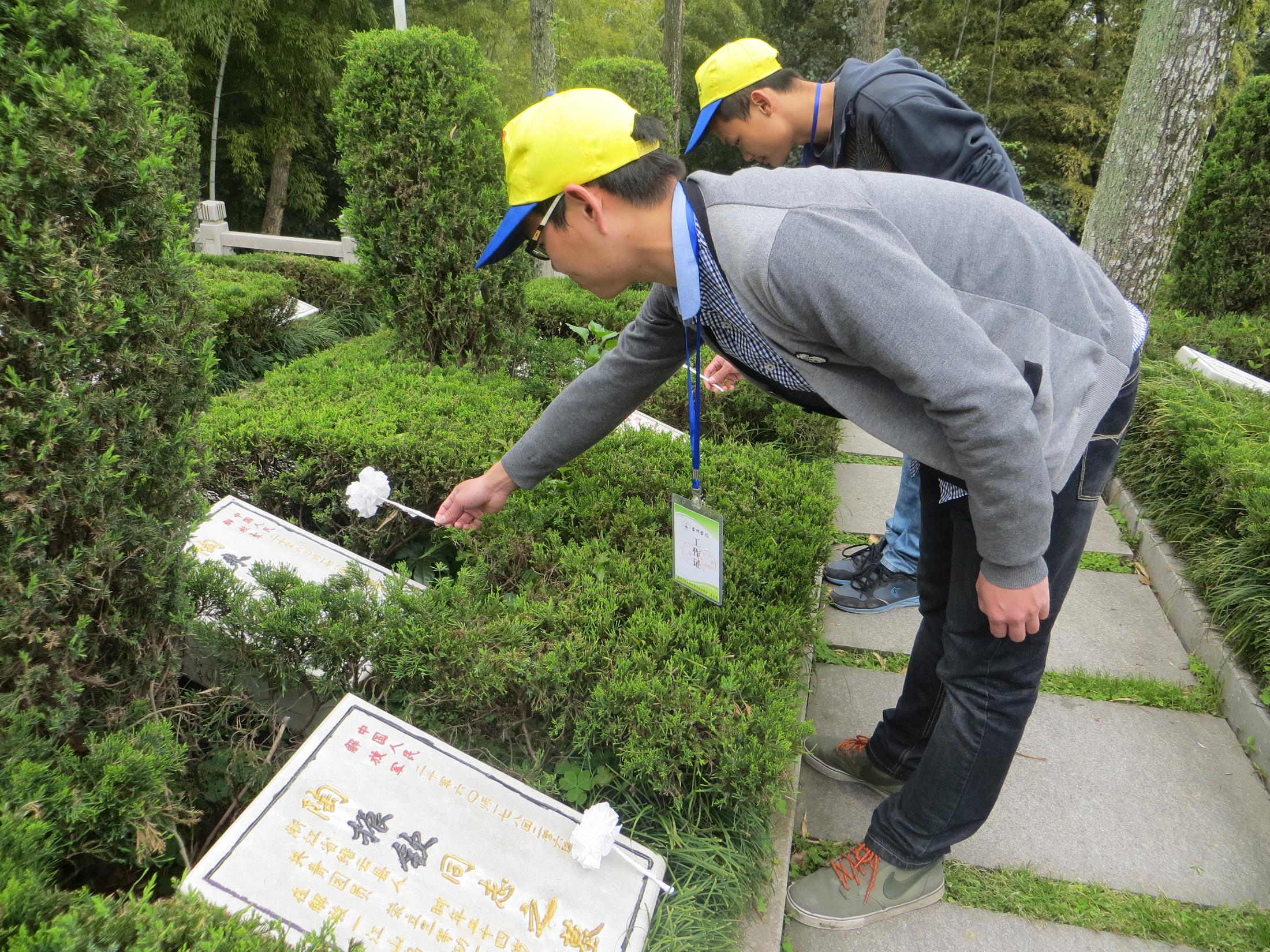 陵园千古慰忠魂,碧海丹霞志士心。踏入陵园,沉重庄严的气氛扑面而来,松翠柏环绕着整座烈士墓。活动在庄严而肃穆的国歌声中拉开了序幕,主持人宣读扫墓词,回首英烈往事。志愿者代表和小学生代表发言,用真挚的言语表达着对革命烈士的崇高敬意和无限哀思。全体人员在庄重的气氛下,默哀深思并宣下了学习革命先烈崇高精神,自我提高,净化思想,争做精神富有的浙江青年的坚定誓言。此后,志愿者们有序地在纪念碑前行三鞠躬后献上小白花,低首绕陵园缓行一周并自发清理陵园垃圾。