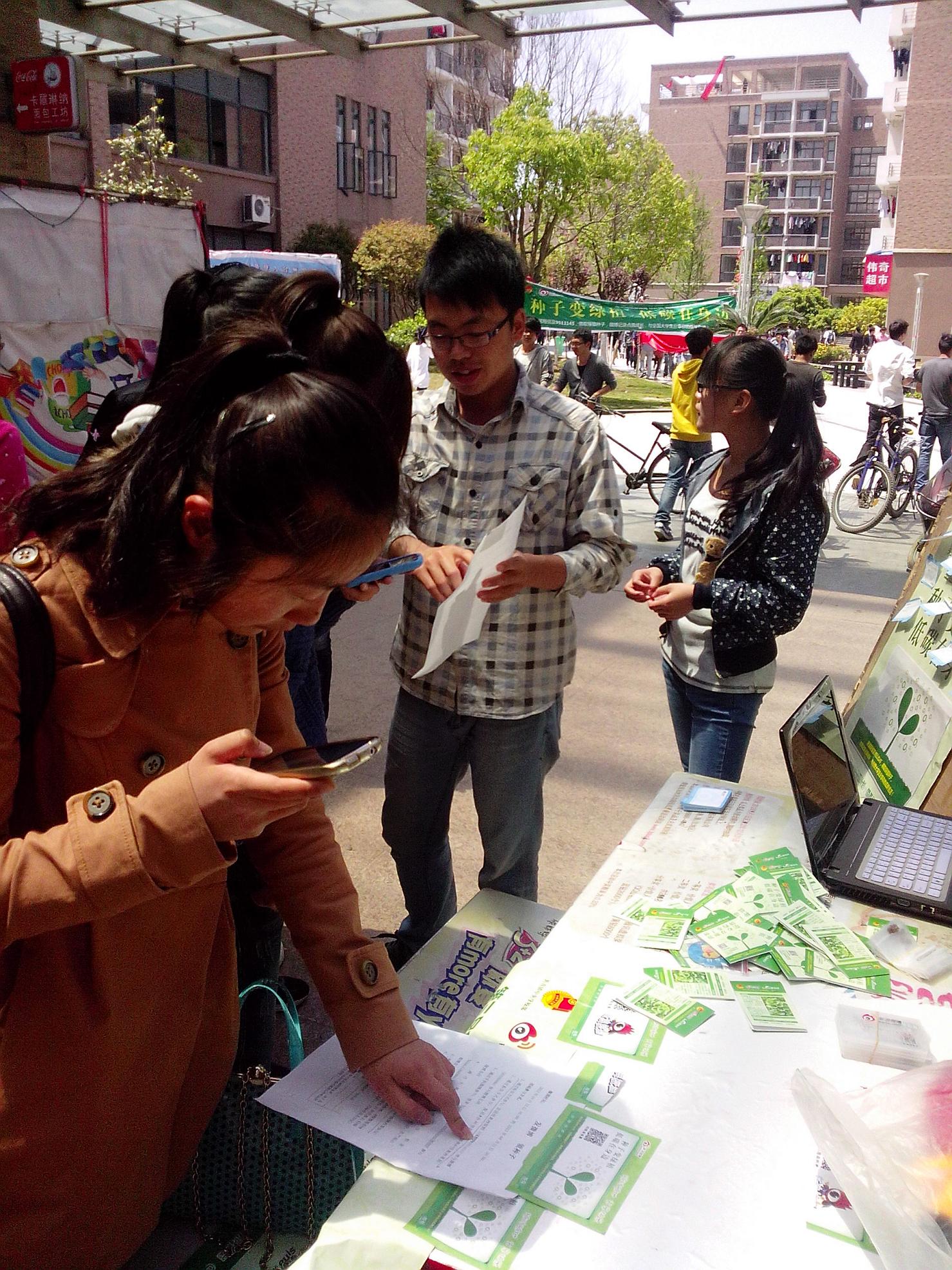 活动现场,每个人只要通过手机发送以绿色低碳为主题的新浪微博,便可以免费领取种子。在工作人员的指导下,应用微博新媒体参与环保活动的新颖而又简单方式,吸引了诸多过往师生纷纷争当“校园花匠”。“多一颗种子,多一点绿色”、“绿色与生命时时相伴,环境与健康息息相关”、“一颗小小的种子也可代表生命的量”……同学们通过微博发表了自己的绿色理念。目前,所有植物种子派发完毕,相信在不久的将来,这些新生命将为校园带来浓浓绿意。